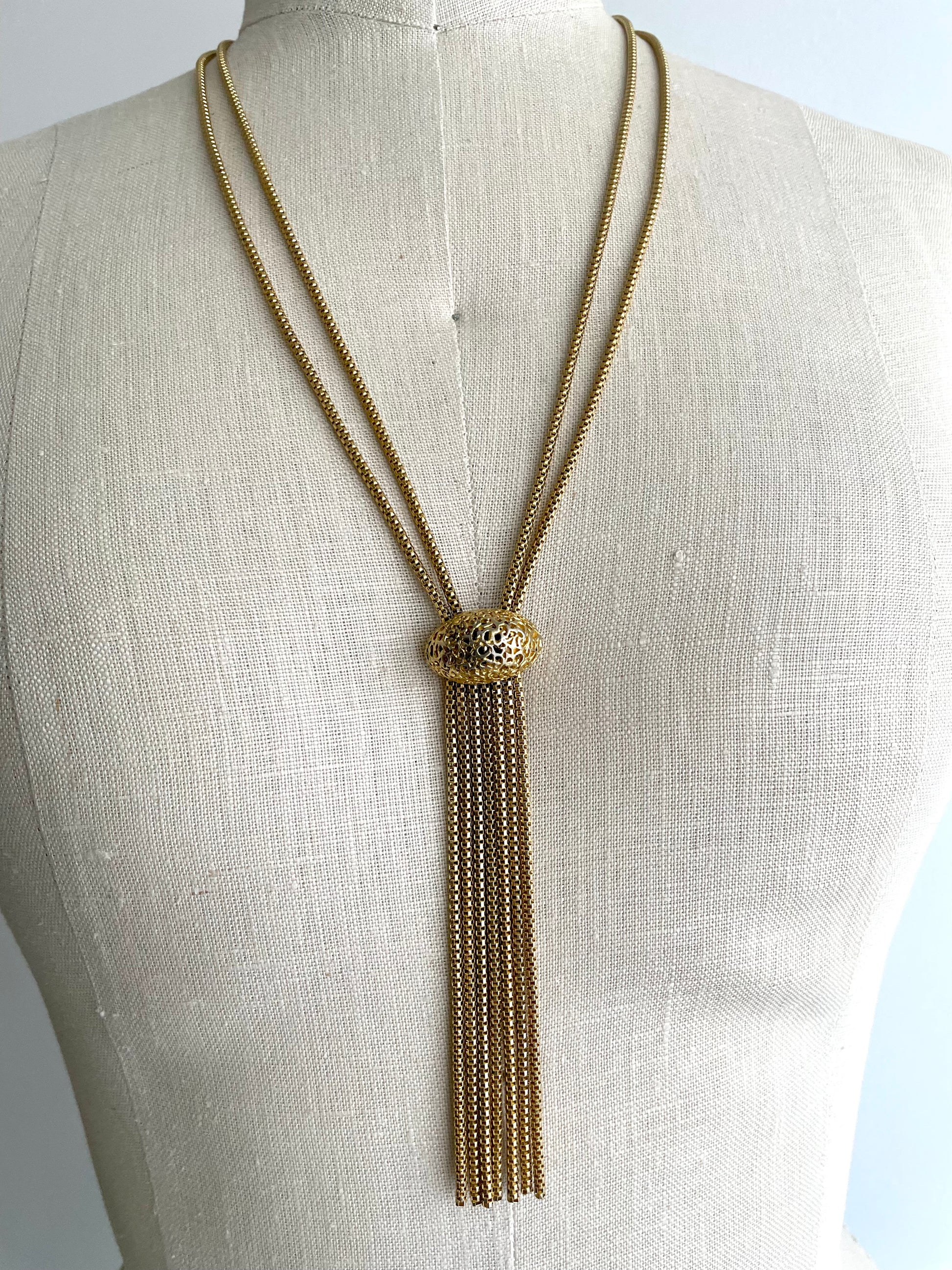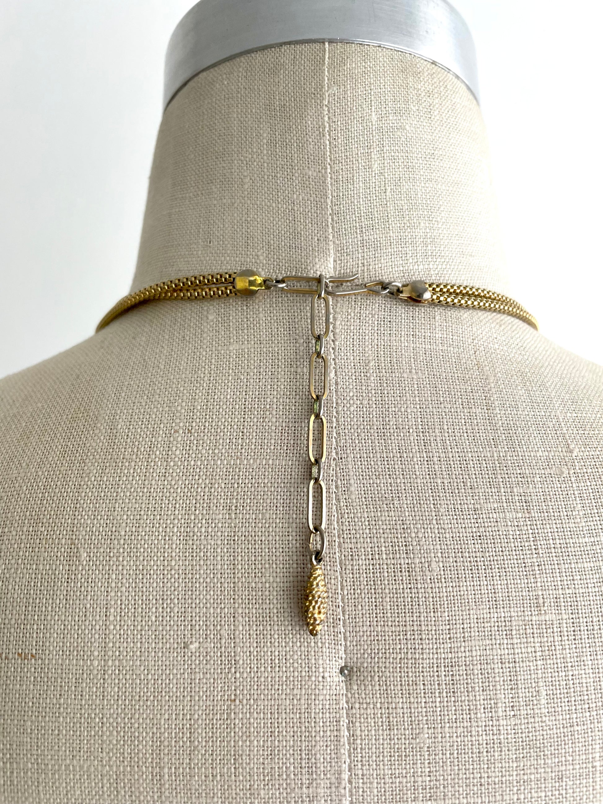 Vintage 1960s/70s multi-strand goldtone necklace, 11.5" drop from center-back neck to pendant (with additional 2.25" chain to adjust fit).